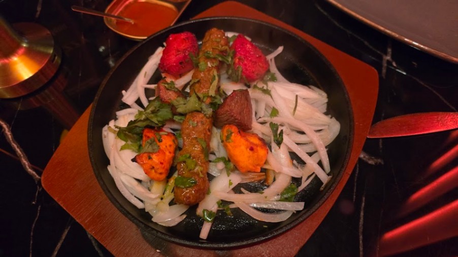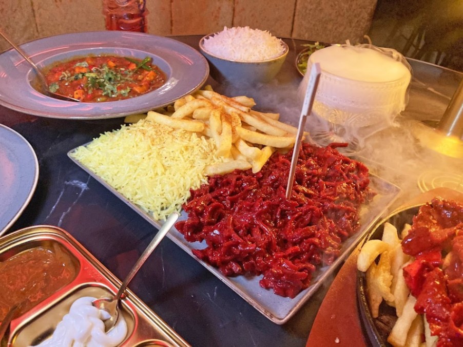 Food was flavourful, filling and reasonably priced. Nice decor, everything was clean and decorated nicely. Service was very good. Entrance can be a little awkward but once you’re in the place is nice. Took my mum and aunty and they enjoyed it so great for family outings and serve varieties of food to suit each person. We had the mix starters, chicken karahi, prawn jalfrezi, garlic naan and naga rice. Perfect level of spice coming from an Asian person. Desserts were on the pricier side or would’ve tried these too. I have no complaints on the food and would recommend. Shisha lounge is separate to dining area. Has a parking lot opposite ( not free ). Food is halal