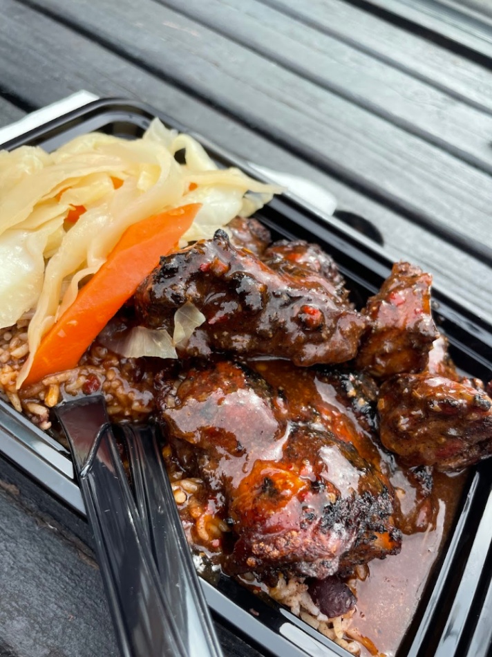 Had a brilliant lunch here today. Ordered a large box with half rice, half chips, topped with curried chicken, peppered steak, and jerk chicken and a side of coleslaw. The food was seriously wonderful - generous portions, bags of flavour on the jerk and the other meats. Big shoutout to Sheree who was really kind and welcoming, and took us through the different meal options! Will definitely be coming back!