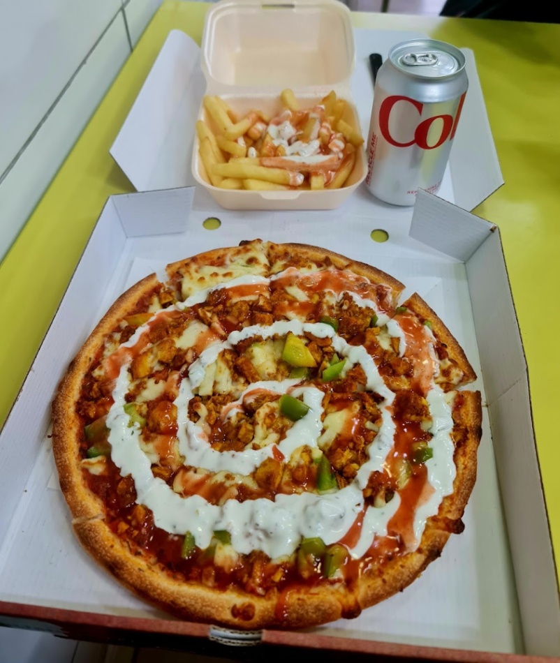 Awesome place to eat! There's plenty of indoor seating and the staff are super friendly. The pizzas and kebabs are delicious. The prices are very reasonable. Set in a prime location. Would definitely recommend 10/10