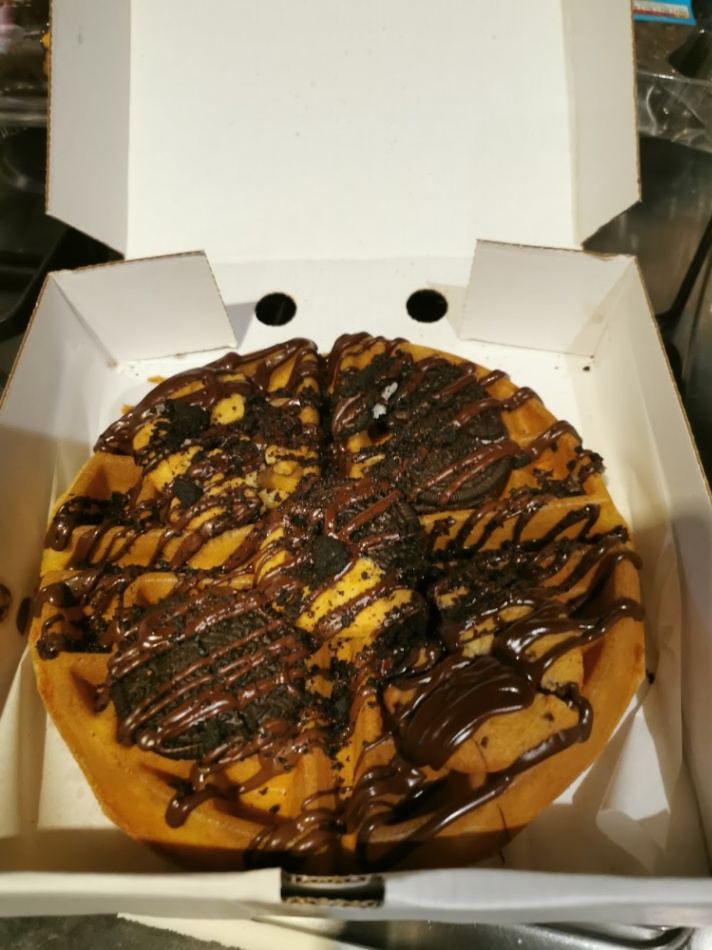 Absolutely lovely, we ordered the cookie explosion waffles and the biscotti waffle. I was very impressed, the portion size was generous and the quality was brilliant 10/10. It came with the cream in a pot, it was lovely with or with out it.