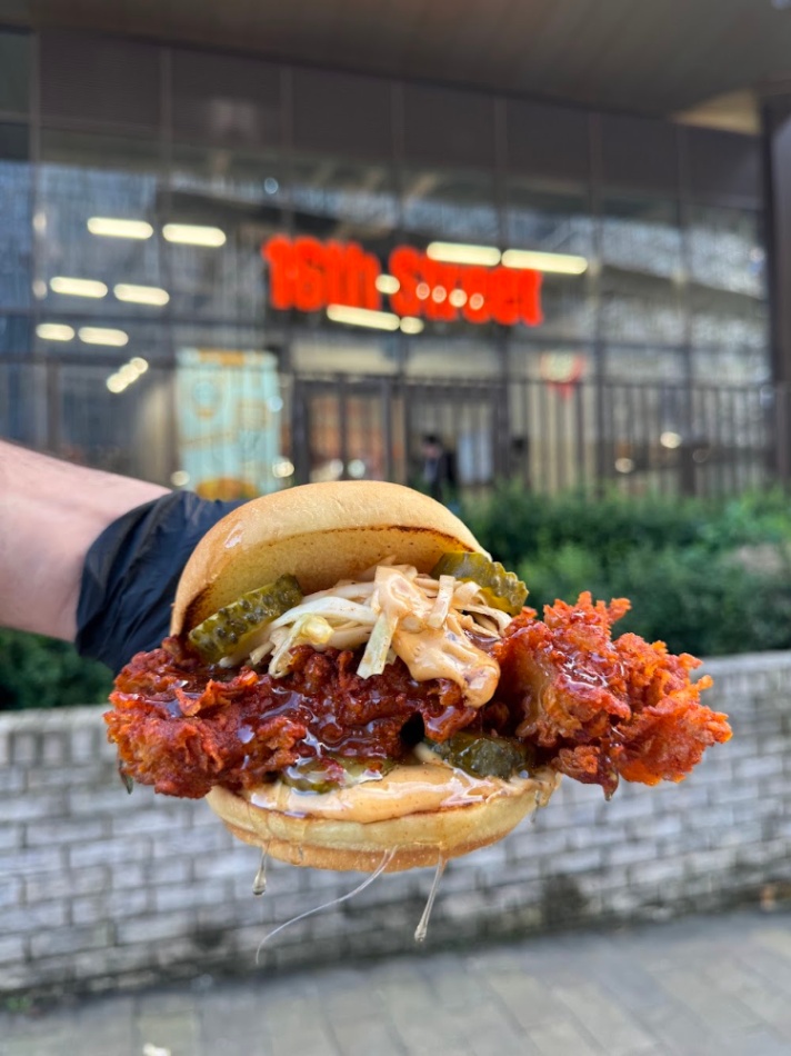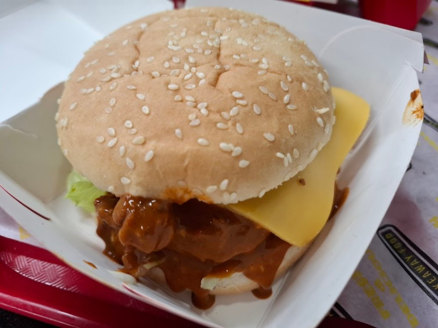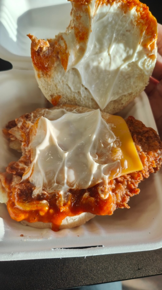 The burger took a fair bit of time to make. Its pricier than some other local hotspots. The burger looked decent and tasted ok. Wasnt too spicy. Ive had much better dipped burgers locally. This burger gave me the shits. 😵💫