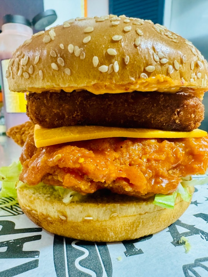 The Fusion Stack Burger at B’s Burgers and Shakes is a flavor-packed delight, combining a juicy smoky beef patty, sliced chicken tikka, sweet caramelized onions. Served on a soft brioche bun and enhanced by spicy mayo sauce, it delivers the perfect balance of textures and tastes. Paired with their crispy fries and a fizzy drink , it’s an indulgent meal worth every bite. Highly recommended!